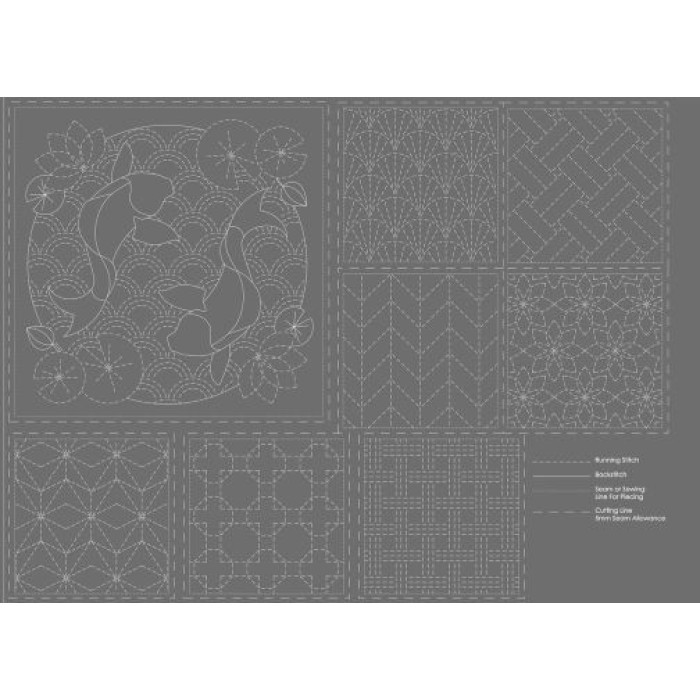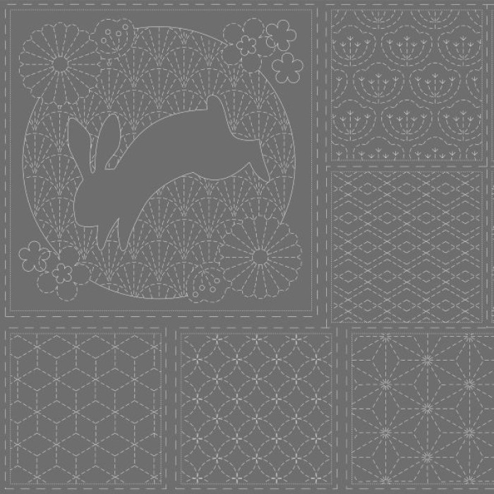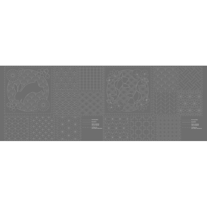 This stunninng animal themed modern sashiko panel features 2 x Large feature blocks (Rabbit & Koi Fish) 12″ and 14 x Small accompanying blocks 6″, giving you a wide range of arrangments for cushions, table runners, quilt top, coasters and many more!