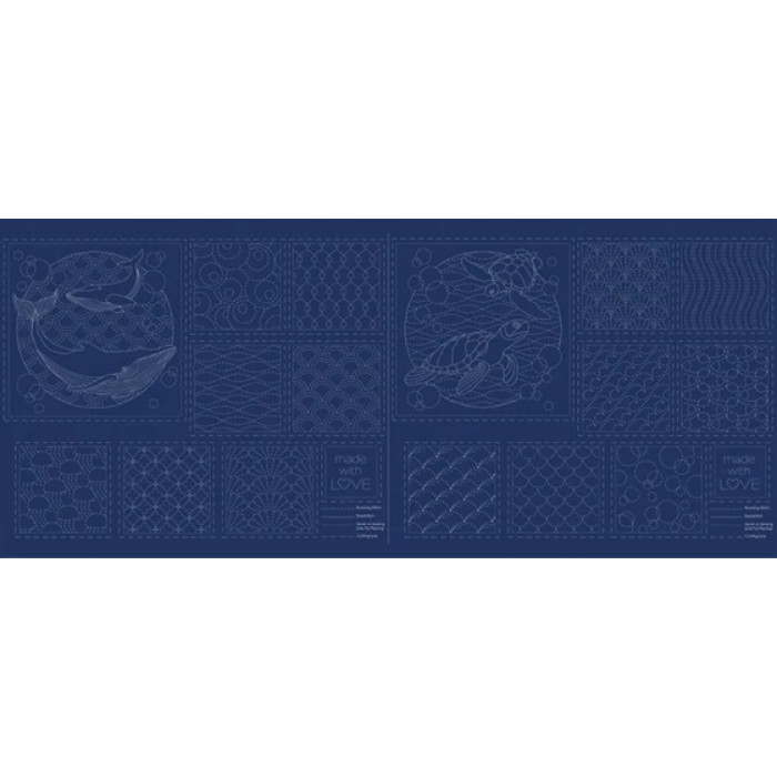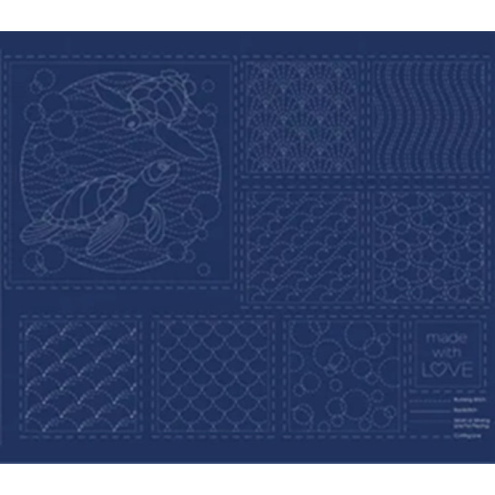 This stunninng sea themed modern sashiko panel features 2 x Large feature blocks 12″ and 14 x Small accompanying blocks 6″, giving you a wide range of arrangments for cushions, table runners, quilt top, coasters and many more!