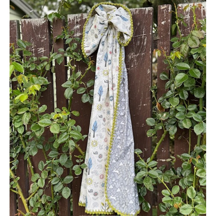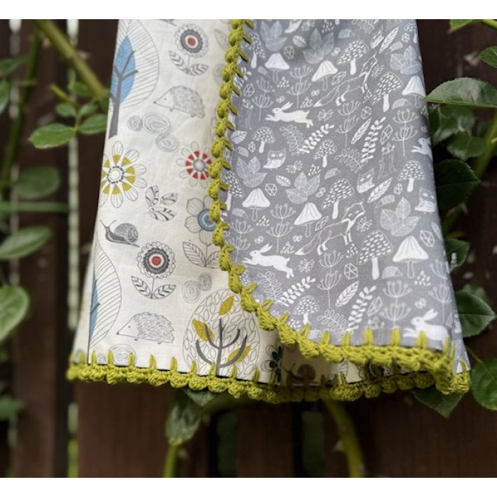 This gorgeous baby blanket would make the perfect gift, and comes as a complete kit with the pattern, fabric, crochet hook and cotton yarn. Basic crochet skills are required. Finished size 90cm x 1m