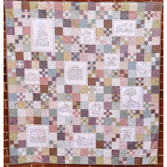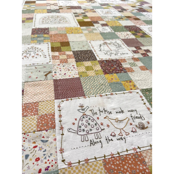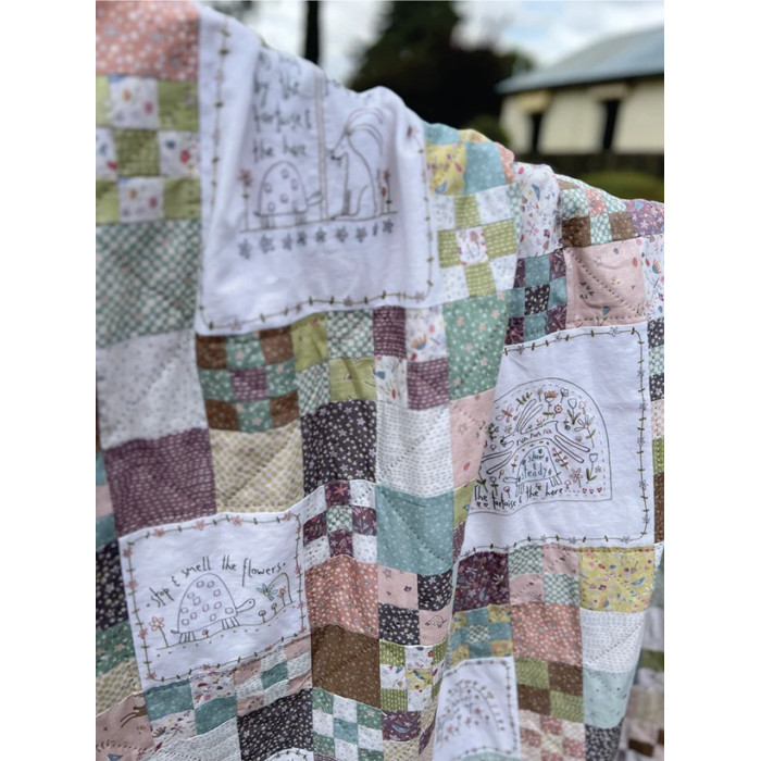 This quilt is a larger-format pattern and the kit has the pre-printed stitchery panel from the fabric range, so you can start stitching straight away!